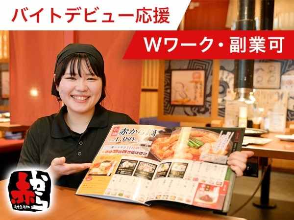 職種:赤からのホールスタッフ/月毎のシフト制/未経験可/髪色(カラー)自由/ディナー