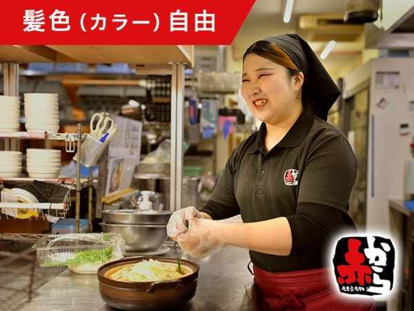 | 職種 | 赤からのホールスタッフ/月毎のシフト制/未経験可/髪色(カラー)自由/ディナー |